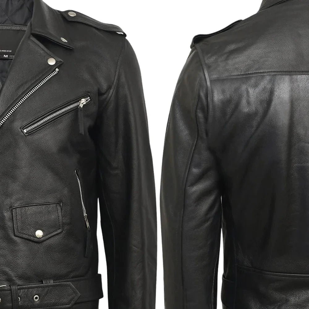 Brando Mens Genuine Leather Biker Jacket Cowhide