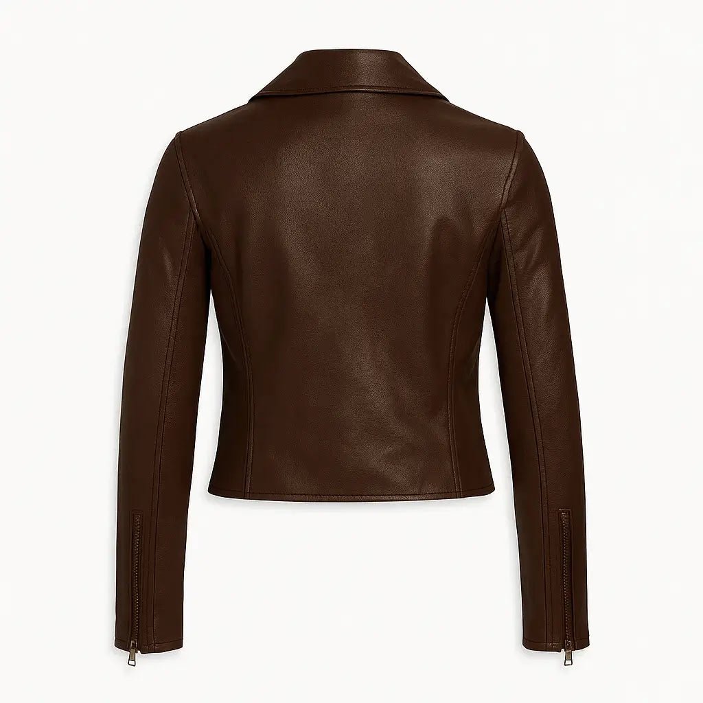 The jacket mixes faux with leather, so it feels rugged but still got details. Inside’s a smooth polyester layer that stays cozy and doesn’t sag out. There’s a crisp collar that hints at motorcycle gear, whereas the front zipper keeps lines neat. You get rich brown shades, plus sleeves that run full length and finish with zipped cuffs toughness meets flair without showing off.
