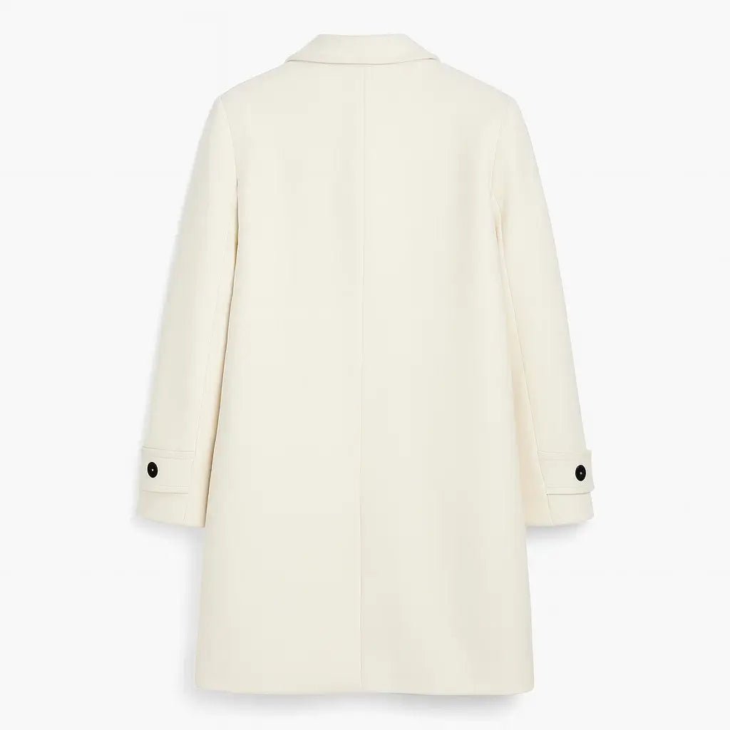 Crafted with wool, it gives a neat shape perfect for chilly days. Inside, a gentle lining boosts ease without losing sharp lines. Up front, buttons close it in a classic way, paired with a lapel neck adding sleek charm. Long sleeves balance out the fit, rounding off its tidy design. In bright white, it feels fresh cool winters meet TV-style flair, drawing those who like festive looks shaped by shows and old-school season vibes.